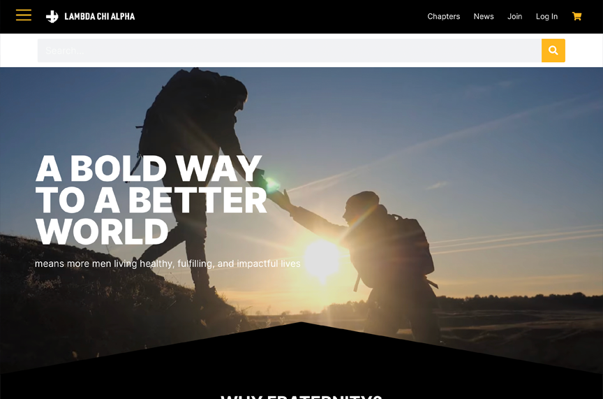 Lambda Chi Alpha. a well-established national fraternity sought to modernize its online presence to better engage prospective members, alumni, and active chapter members. Their existing website was outdated, difficult to navigate, and lacked a cohesive brand identity. Additionally, the site did not effectively showcase the fraternity’s values, history, and recruitment opportunities.